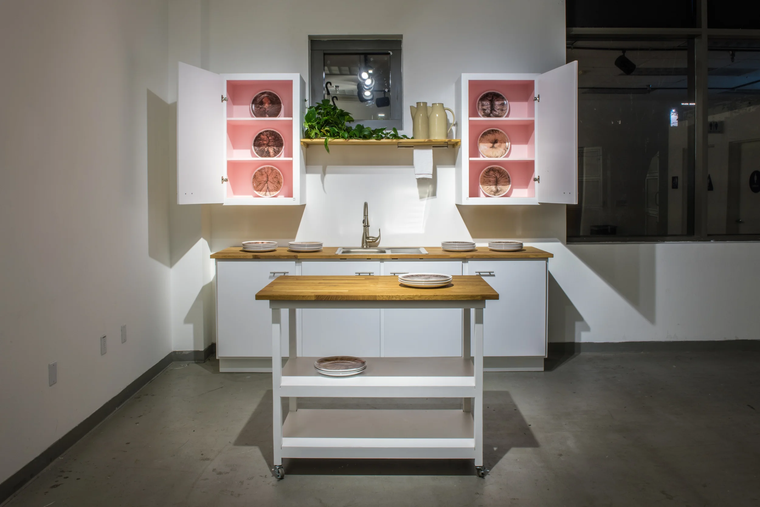 Wood, paint, metal, ceramic plates, decal (fired photo on ceramic), photo.